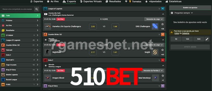A aposta 510bet oferece aos jogadores a experiência mais conveniente de apostas em eSports!